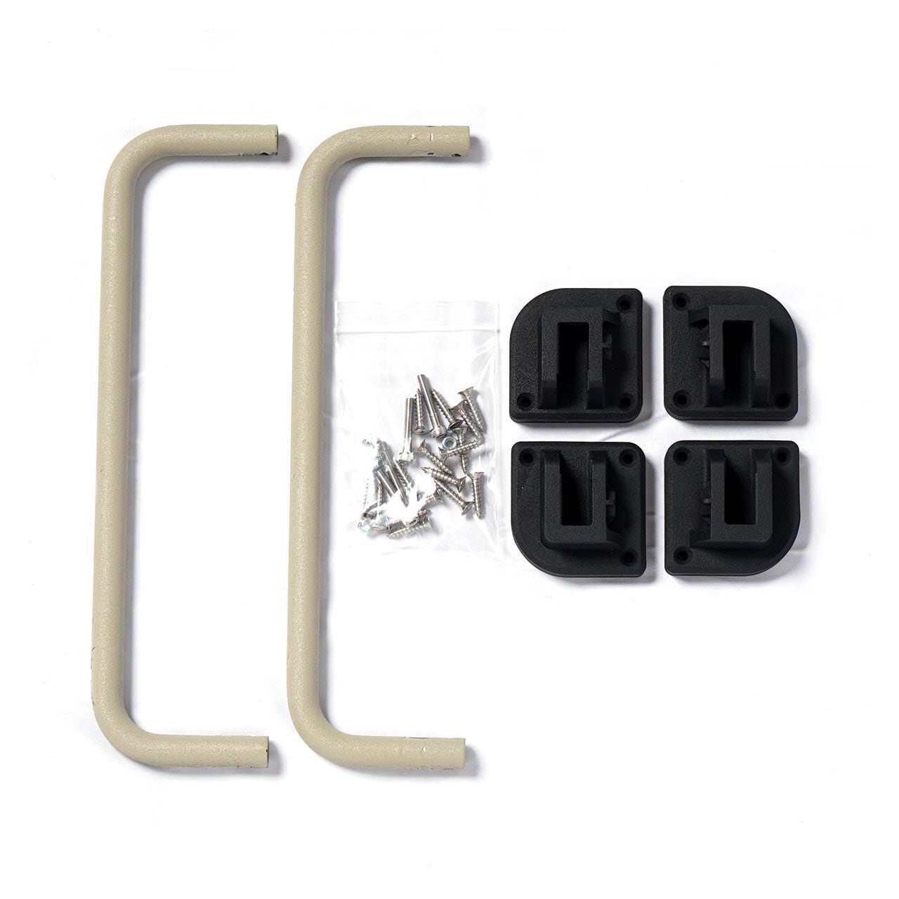 詳しい取付方法は別途箱書きの取り扱い説明をお読みいただく必要がございますが、まずパイプを左右のブロックにボルトナットで固定していただいた後に底面の突起に嵌めていただき、付属のタッピングビスで本体に穴を開けながら止め付けてください。(クーラー本体に直接穴を開ける事になります事を予めご承知おき下さい。又、本体への穴あけを良しとされない場合はご購入をお見合わせ願います。※ YETIの純正オプションパーツにもタッピングにより直付けするものがございます。)