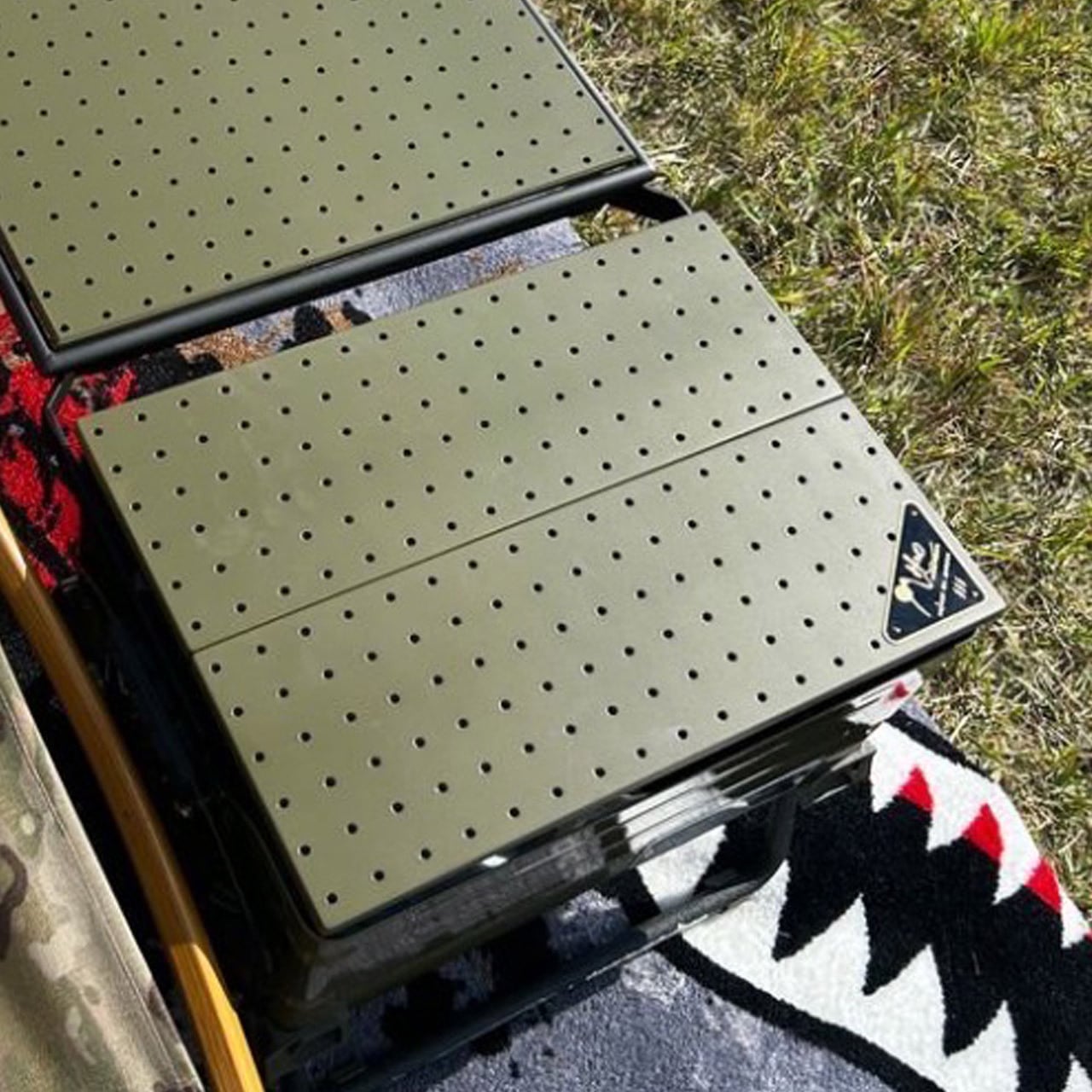パンチングがミリタリー感を演出し軽量化にも貢献するシェルコン50用テーブルトップです。